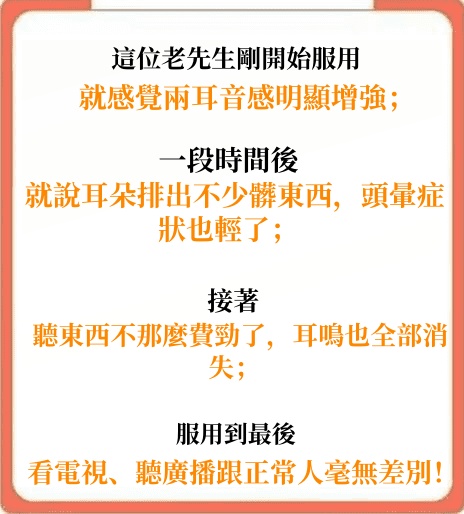 尤其是在令現代醫學束手無策的「修復耳神經」方面,其效果令人驚嘆。 只要還能聽到一點聲音,只要你的耳鼓膜沒有完全破壞,就可以修復耳神經,消除耳鳴,恢復聽力。